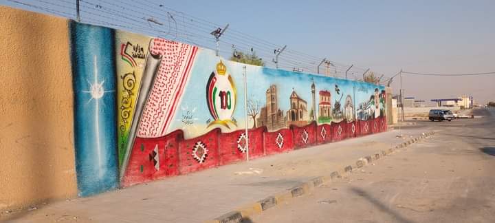 رسم جدارية على مدخل محافظة المفرق بمناسبة المئوية