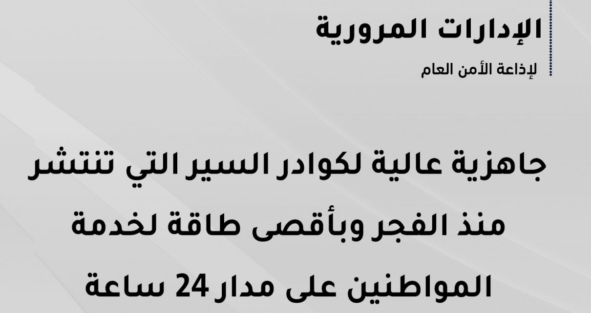 إدارة السير: جاهزية عالية لكوادر السير التي تنتشر منذ الفجر وبأقصى طاقة لخدمة المواطنين على مدار 24 ساعة.