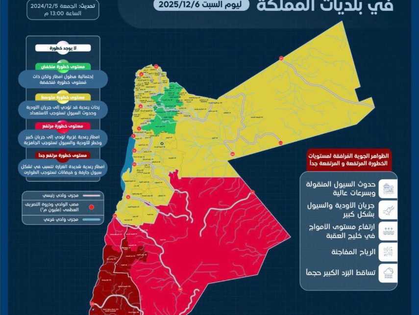 سلطة إقليم البترا تؤكد خلو الموقع الأثري من الزوار حفاظاً على سلامتهم خلال فترة الحالة الجوية مع نهاية اليوم السبت