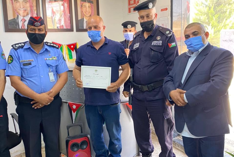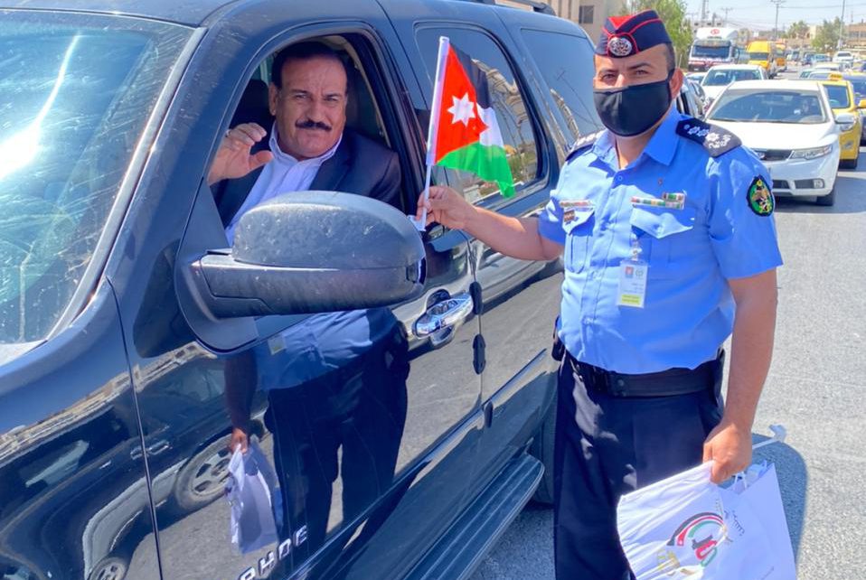 الشرطة المجتمعية في المفرق توزع شعار المئوية بمناسبة عيد الأستقلال