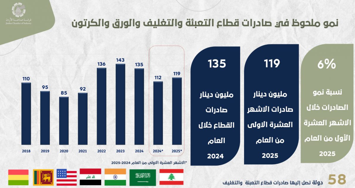 صناعة الأردن: مليار دينار مبيعات قطاع “التعبئة والتغليف” بالسوق المحلية