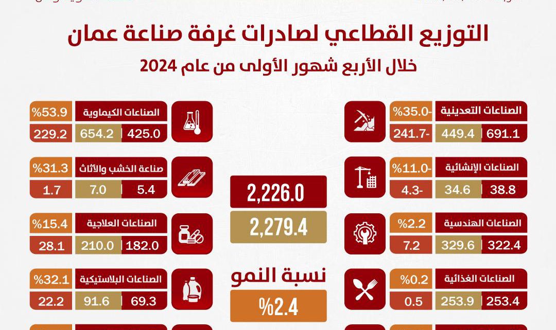 صادرات صناعة عمان تستعيد النمو وترتفع 2 % بالثلث الأول