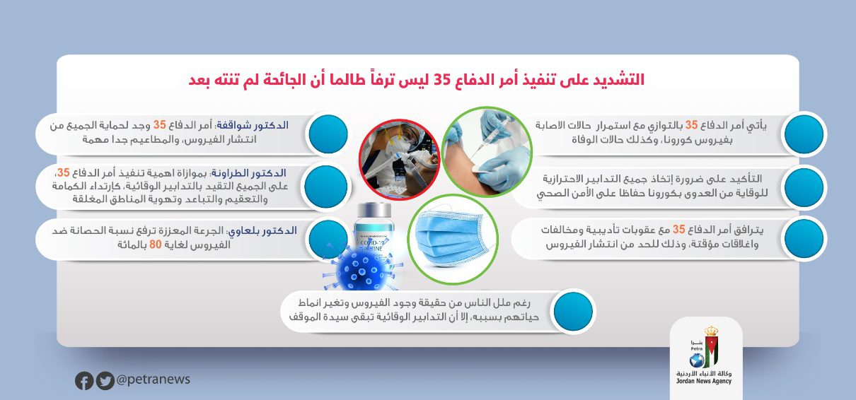 التشديد على تنفيذ أمر الدفاع 35 ليس ترفا طالما أن الجائحة لم تنته بعد