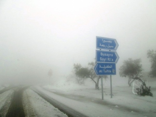 الطفيلة تشهد هطولات ثلجية خفيفة