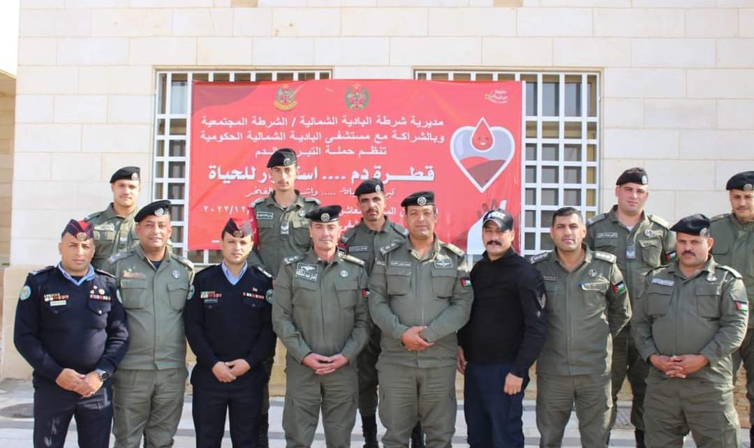 الشرطة المجتمعية في مديرية شرطة البادية الشمالية تنظم حملة التبرع بالدم في مستشفى البادية الشمالية الحكومي