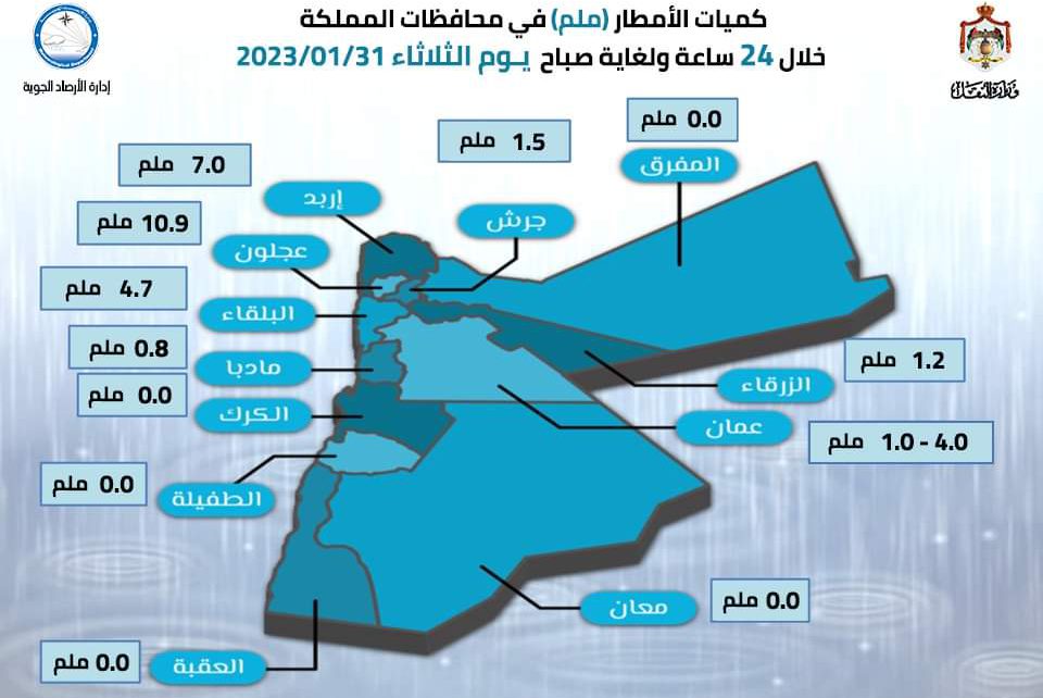 عجلون تسجل اعلى نسبه هطول مطري خلال ال 24 ساعه الماضية