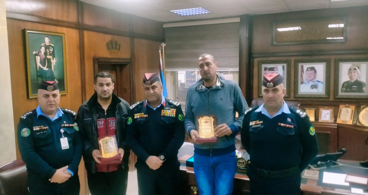 مدير شرطة اربد يكرم مواطنان على امانتهم في اعادة محفظة مفقودة