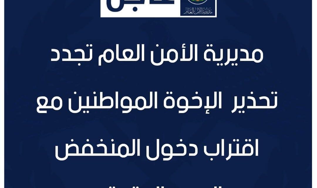 مديرية الأمن العام تجدد تحذير الإخوة المواطنين مع اقتراب دخول المنخفض الجوي المتوقّع