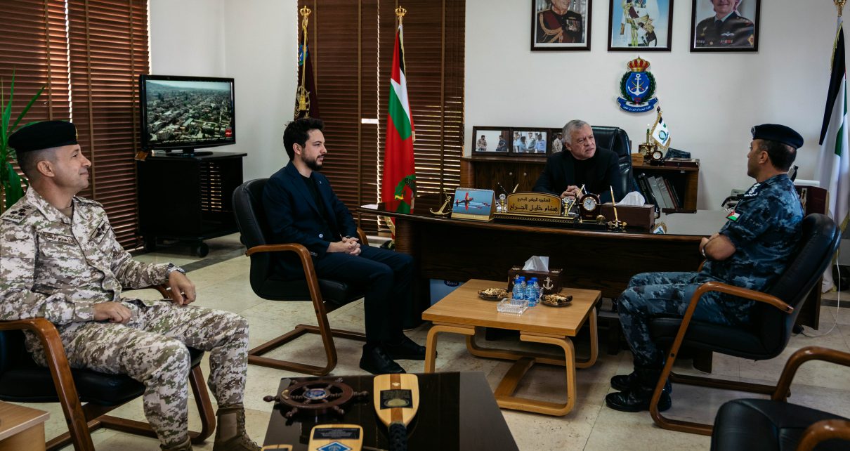جلالة الملك عبدالله الثاني، القائد الأعلى للقوات المسلحة، يرافقه سمو الأمير الحسين بن عبدالله الثاني، ولي العهد، يزور قيادة القوة البحرية والزوارق الملكية