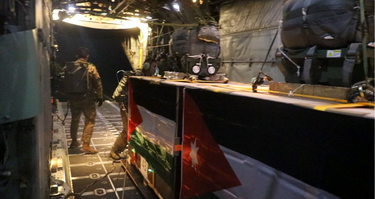 طائرات سلاح الجو تنفذ عملية إنزال لمساعدات طبية عاجلة للمستشفى الميداني الأردني غزة 77