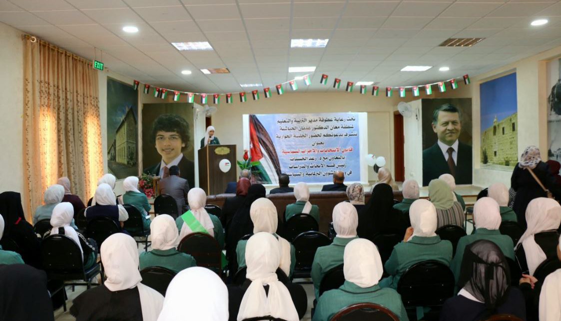 جلسة حوارية بمديرية تربية معان لطلبة البرلمان المدرسي بالتعاون مع وزارة الشؤون البرلمانية والسياسية عن قانون الانتخاب والأحزاب السياسية