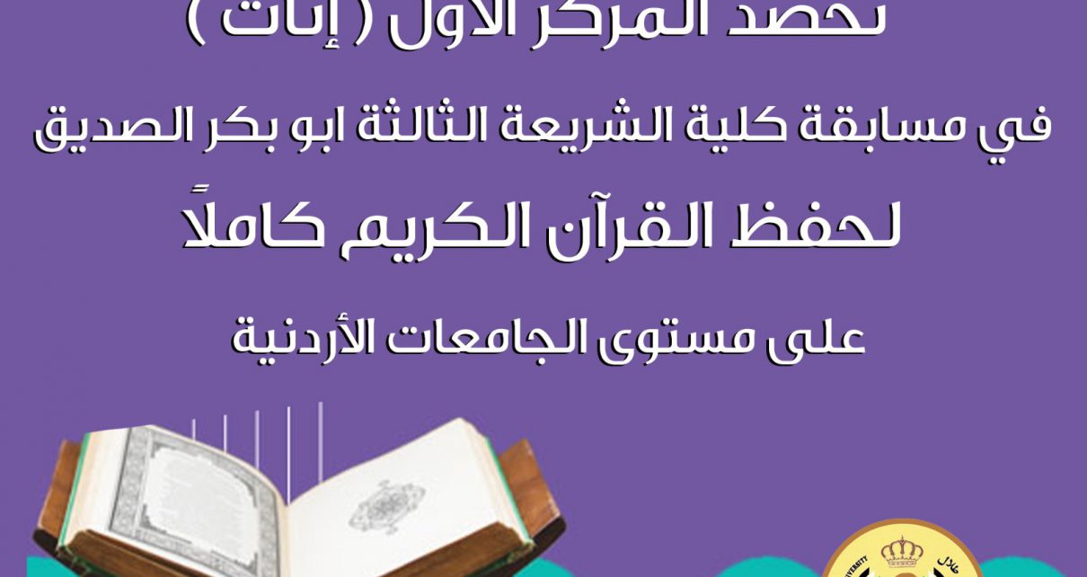الحسين بن طلال تحصد المركز الأول في مسابقة كلية الشريعة الثالثة ”ابو بكر الصديق” لحفظ القرآن الكريم كاملاً على مستوى الجامعات الأردنية.