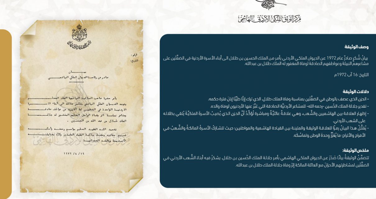 التوثيق الملكي يعرض وثيقة بمناسبة ذكرى وفاة الملك طلال بن عبدالله
