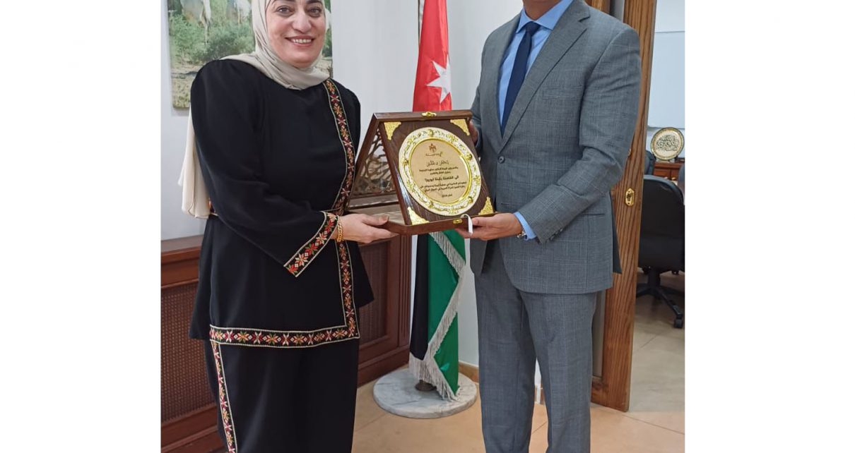 وزير البيئة يكرم الفائزة بالمرتبة الأولى بجائزة التميز للمرأة العربية