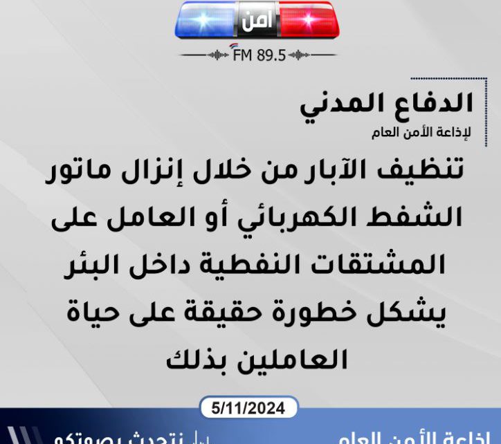 الدفاع المدني يؤكد على ضرورة اتباع الاجراء الوقائي عند تنظيف الآبار