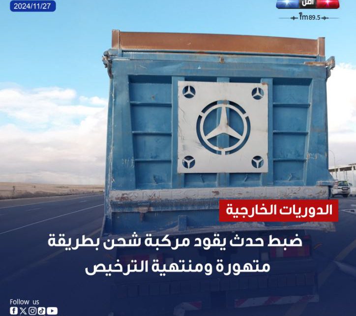 الدوريات الخارجية لإذاعة الأمن العام : ضبط حدث يقود مركبة شحن بطريقة متهورة ومنتهية الترخيص