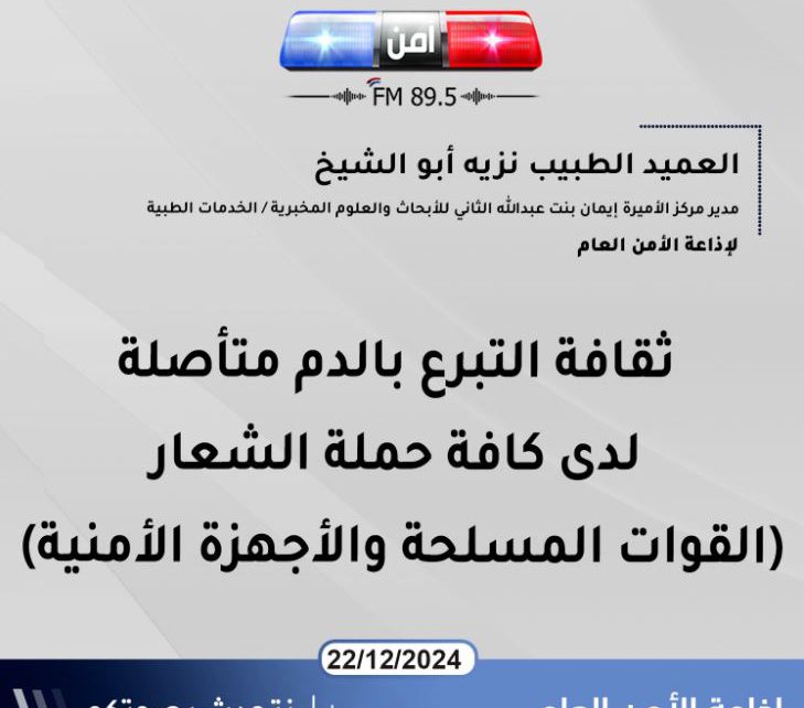 العميد الطبيب نزيه أبو الشيخ : ثقافة التبرع بالدم متأصلة لدى كافة حملة الشعار