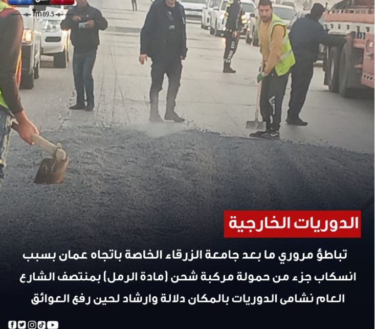 عدم تثبيت حمولة مركبات الشحن بالشكل الصحيح يتسبب بإعاقات مرورية على طرق رئيسية يوم أمس وصباح اليوم