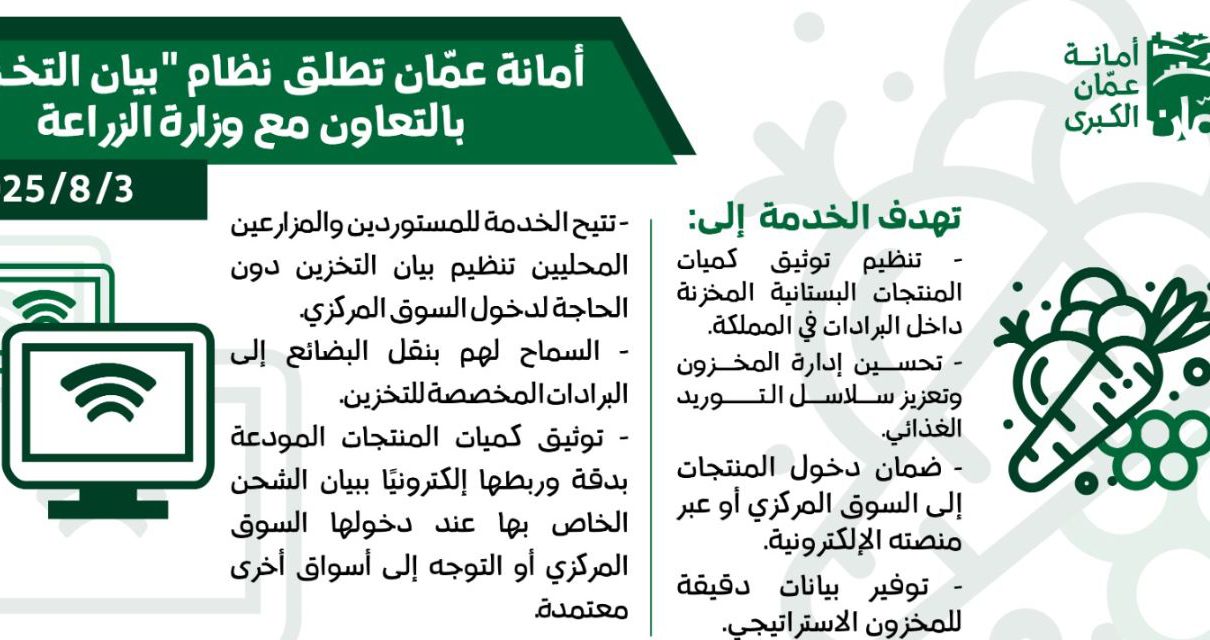 أمانة عمان تطلق نظام “بيان التخزين” لسوق الخضار والفواكه