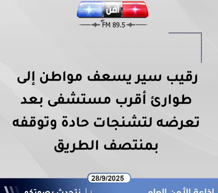 رقيب سير يسعف مواطن إلى طوارئ أقرب مستشفى بعد تعرضه لتشنجات حادة وتوقفه بمنتصف الطريق