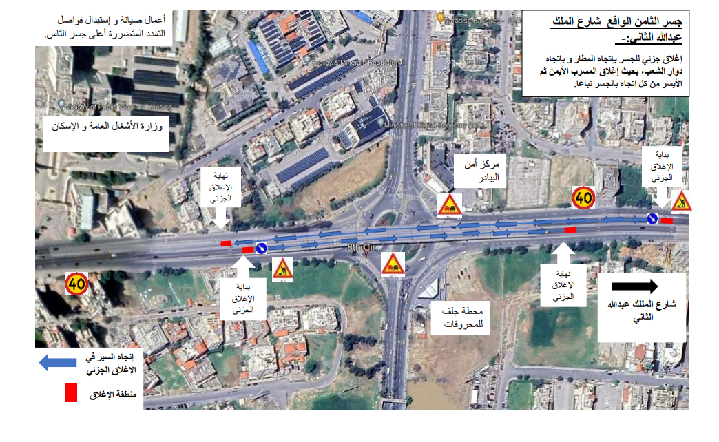 “الأشغال” تبدأ المرحلة الأخيرة من تأهيل جسر الثامن ضمن مشروع صيانة الجسور في العاصمة