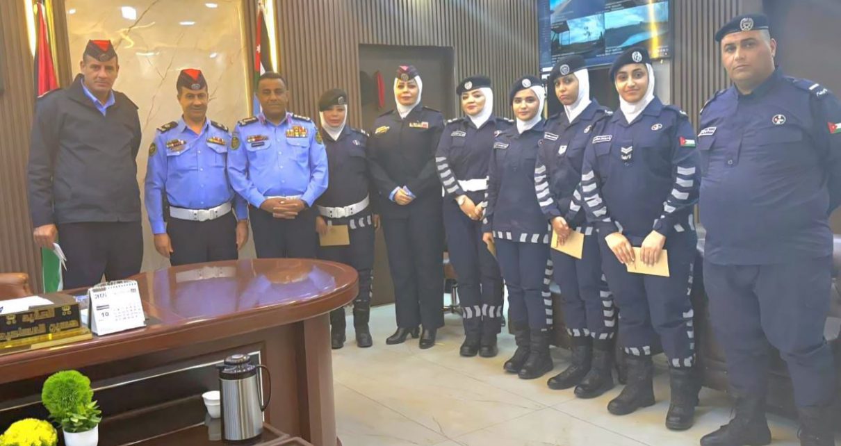 مندوباً عن مدير الأمن العام مدير الدوريات الخارجية يكرّم طاقم دوريتين من الشرطة النسائية تقديراً لتميزهن في الميدان