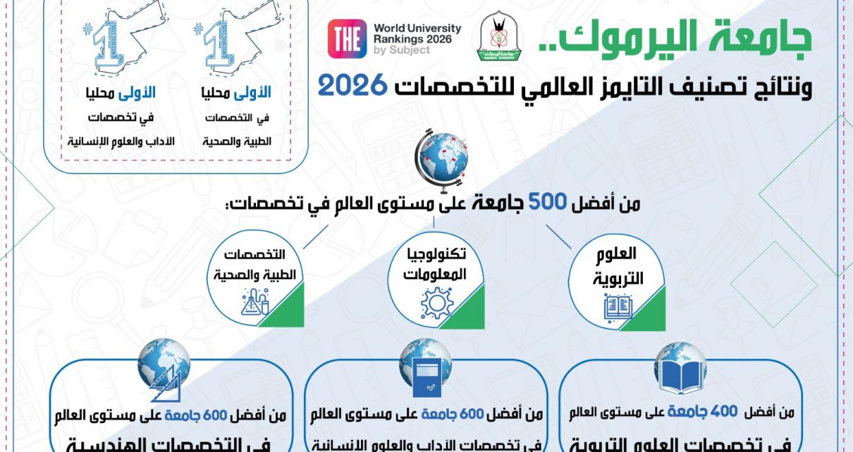 “اليرموك” الأولى محليا في “التخصصات الطبية والصحية والآداب والعلوم الإنسانية” في تصنيف التايمز العالمي للتخصصات