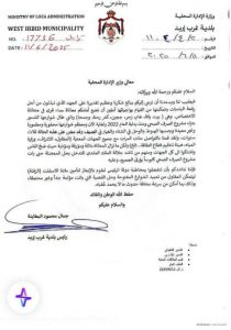 قامت بلدية غرب إربد بتوجيه كتاب شكر وتقدير إلى معالي وزير الإدارة المحلية، تقديرًا لجهود الوزارة المتواصلة في دعم البلديات وتمكينها من تنفيذ مهامها الخدمية، وذلك في إطار متابعة بلدية غرب إربد لمشكلة الطرق المتضررة في عدد من القرى التابعة لها.