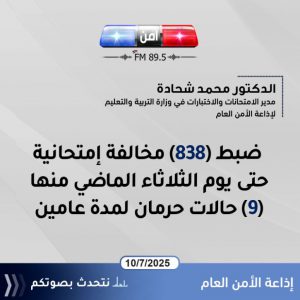 كما نفى شحادة وجود أي حالات تسريب لأسئلة الامتحان، مؤكدًا أن مغلفات الأسئلة محكمة الإغلاق ومختومة ومخزنة داخل غرف محصّنة تخضع لمراقبة دائمة عبر الكاميرات وأنظمة الليزر، بإشراف غرفتي تحكُّم تعملان على مدار الساعة، وأن عملية التوزيع تتم بمرافقة أمنية.