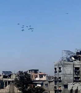 نفذت القوات المسلحة الأردنية – الجيش العربي امس ، 3 إنزالات جوية على قطاع غزة تحمل مساعدات إنسانية وغذائية، إحداها مع دولة الأمارات العربية الشقيقة.
