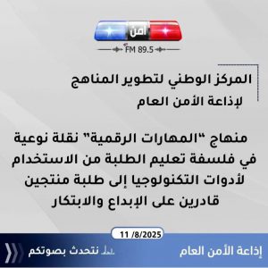 أكد الدكتور وليد خالد سلامة، رئيس فريق الإشراف على تأليف منهاج “المهارات الرقمية” في المركز الوطني لتطوير المناهج خلال برنامج “الأمن والمجتمع” والذي يبث عير أثير إذاعة الأمن العام، أن إطلاق هذا المنهاج يمثل تحولًا جذريًا في فلسفة التعليم بالأردن، إذ ينقل الطلبة من مجرد مستخدمين لأدوات التكنولوجيا إلى مواطنين رقميين منتجين وناقدين قادرين على الإبداع والابتكار.