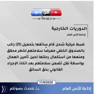 ضابط عمليات إدارة الدوريات الخارجية أكد في حديثه لأمن إف إم على إن الطرق الخارجية تشهد حركة سير نشطة وإنه لم يتم التعامل خلال الفترة الصباحية مع أي ملحوظة تؤثر على انسيابية الحركة المرورية ما يدل على التزام المواطنين وتقيدهم بقواعد وأولويات المرور.