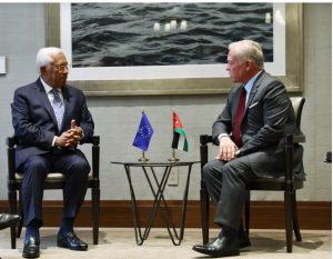 وخلال لقاء مع رئيس المجلس الأوروبي أنطونيو كوستا، أكد جلالة الملك حرص الأردن على البناء على الشراكة الاستراتيجية مع الاتحاد الأوروبي وتوسيع الاستفادة منها في مجالات عديدة، معربا عن اعتزازه بالصداقة المتينة بين الجانبين.