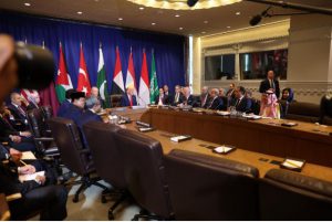 وشارك في الاجتماع الرئيس دونالد ترمب، وسمو الشيخ تميم بن حمد آل ثاني أمير دولة قطر، والرئيس التركي رجب طيب أردوغان، ورئيس إندونيسيا برابوو سوبيانتو، ونائب رئيس مجلس الوزراء وزير الخارجية الإماراتي سمو الشيخ عبدالله بن زايد آل نهيان، ووزير الخارجية السعودي سمو الأمير فيصل بن فرحان آل سعود، ورئيس الوزراء المصري الدكتور مصطفى مدبولي، ورئيس الوزراء الباكستاني شهباز شريف.