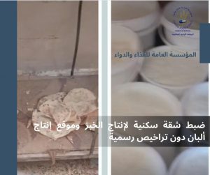 وأضافت المؤسسة في بيان صحفي، أنه وضمن حملة رقابية نوعية نفذتها كوادر التفتيش في مديرية المناطق في المنطقة ذاتها، تم ضبط منشأة تقوم بتصنيع الألبان دون الحصول على الموافقات والتراخيص الرسمية اللازمة في ظروف صحية سيئة ودون توفر الاشتراطات الصحية اللازمة.