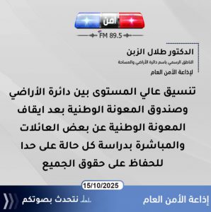 وحول موضوع إيقاف رواتب صندوق المعونة الوطنية عن بعض المواطنين بعد أن تبين أن بعض الحالات والأشخاص أصبحوا شركاء بشكل جزئي ببعض الممتلكات قال إن هناك تعاون بين دائرة الأراضي وصندوق المعونة الوطنية عالي التنسيق وأنه بحكم أن هناك معاملات نقل ملكية من المتوفين للورثة أصبح هناك مالكين جدد وهناك إفرازات معينة أدخلت بعض الشركاء وتم إزالة بعض الشركاء مبينا أن جميع هذه الظروف تحتاج إلى إعادة نظر وإلى إعادة دراسة كل حالة بحالتها وبالتالي بناء على الشراكة الحقيقية مع صندوق المعونة الوطنية لن يكون هناك أي تأخير وسيتم حل الأمور بأقرب وقت