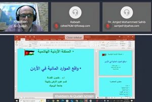 نظمت كلية العلوم، والكلية التقنية الهندسية في الجامعة التقنية الوسطى في بغداد، ندوة علمية دولية عبر تقنية الاتصال المرئي عن بُعد بعنوان “الواقع المائي في المملكة الأردنية الهاشمية”، تحدث فيها الدكتور خلدون القضاة، وأدارها الدكتور مفيد عبد الغفور.