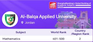 واصلت جامعة البلقاء التطبيقية تعزيز حضورها في التصنيفات العالمية بعد تحقيقها تقدّماً لافتاً في اثنين من أهم التصنيفات الدولية هذا العام، هما: تصنيف الكيو إس للتنمية المستدامة (QS Sustainability 2026)، وتصنيف شنغهاي للحقول العلمية (GRAS).