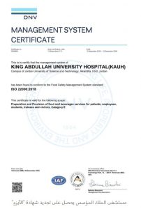 أعلنت شركة “DNV” العالمية لإدارة نظام الجودة، اليوم الأربعاء، عن حصول مستشفى الملك المؤسس عبد الله الجامعي على تجديد شهادة “الآيزو 22000” حسب إصدارها الجديد (2018) لمدة 3 سنوات (2026-2029).