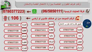 ودعت المواطنين إلى ضرورة توخي الحيطة والحذر، و الإبلاغ عن أي حالة طارئة عبر غرفة العمليات الرئيسية وغرف العمليات في المحافظات، أو من خلال الرقم الموحد 106، او من خلال الواتساب 0780377223 وتطبيق نظام بلاغات الأشغال على الهواتف الذكية، بإلإضافة لأرقام الهواتف المعلنة عبر صفحات الوزارة على منصات التواصل الاجتماعي وموقعها الإلكتروتي.