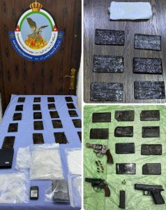 وفي القضية الثانية في محافظة مأدبا تابع العاملون في الإدارة معلومات حول شخصين وارتباطهما بعصابات إقليمية لتهريب المخدرات وحيازتهما نتيجة ذلك لكميات كبيرة من المواد المخدرة، حيث جرى بعد التأكد من كافّة المعلومات إلقاء القبض عليهما بعد مداهمتهما وضُبط بحوزتهما 50 كف حشيش ونصف كغم من مادة الكوكايين .