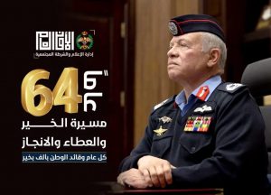 كل عام وجلالة الملك عبدالله الثاني، القائد الأعلى للقوات المسلحة، بألف خير، حفظكم الله قائداً مُلهِماً ومُعلِّماً، وأدامكم ذخراً وسنداً للوطن والأمة. نسأل الله أن يمدّكم بموفور الصحة والعافية، وأن يبقيكم رمزاً للعطاء والإنجاز. كل عام وجلالتكم بألف خير.