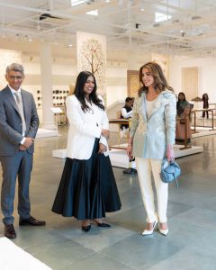 كما تجولت جلالتها في معرض استكشافات الحرف وأرشيف المدرسة، حيث تعرض مواد ومنسوجات تراثية إلى جانب أعمال حرفية معاصرة بطريقة تربط بين التقاليد والابتكار. كما زارت “المتحف الحي”، الذي يعكس فلسفة العمل الجماعي والحرفية العريقة.