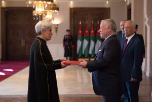 فقد تقبل جلالة الملك عبدالله الثاني أوراق اعتماد كل من سفير دولة الكويت حمد راشد المري، وسفيرة الجمهورية التونسية مفيدة الزريبي، وسفير سلطنة عُمان الشيخ فهد عبدالرحمن بن أحمد العجيلي.