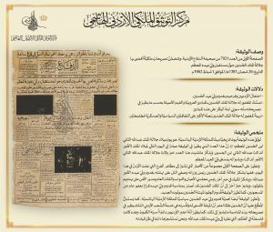 وأشار المركز إلى أن الوثيقة تضم مجموعةً من الأخبار المتصلة بالحدث، مثل توافد المهنئين إلى الديوان الملكي لتقديم التهاني لجلالة الملك الحسين وتثمينه لمشاعر المهنئين من مختلف المواقع والمناصب الداخلية والخارجية.