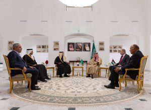 الجمعة 9-2-2024 :شارك نائب رئيس الوزراء ووزير الخارجية وشؤون المغتربين أيمن الصفدي في الاجتماع التشاوري الوزاري العربي الذي دعا له وزير الخارجية السعودي سمو الأمير فيصل بن فرحان، أمس في الرياض، لبحث تطورات الحرب الإسرائيلية على قطاع غزة، وبحضور كل من رئيس مجلس الوزراء وزير الخارجية القطري الشيخ محمد بن عبدالرحمن آل ثاني، ووزير الخارجية الإماراتي سمو الشيخ عبدالله بن زايد آل نهيان، ووزير الخارجية المصري سامح شكري، وأمين سر اللجنة التنفيذية لمنظمة التحرير الفلسطينية حسين الشيخ.