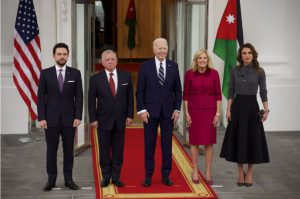 وكان جلالة الملك، وصل إلى البيت الأبيض ترافقه جلالة الملكة رانيا العبدالله وسمو الأمير الحسين بن عبدالله الثاني ولي العهد، إذ كان في استقبالهم الرئيس الأمريكي جو بايدن والسيدة الأولى جيل بايدن.