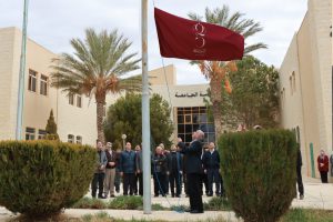 احتفالاً بمناسبة مرور 25 عاماً على جلوس جلالة الملك عبدالله الثَّاني ابن الحسين حفظه الله ورعاه على العرش، قام رئيس جامعة الحسين بن طلال الأستاذ الدكتور عاطف الخرابشة اليوم برفع “علم اليوبيل الفضي” أمام مبنى رئاسة الجامعة، وذلك بحضور نائب الرئيس للشؤون الأكاديمية الأستاذ الدكتور أحمد أبو جري ونائب الرئيس للشؤون الإدارية الأستاذ الدكتور محمد الرصاعي.