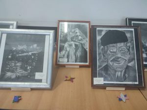 وتناولت اللوحات المعروضة التي رسمت بريشة عدد من طالبات المدرسة موضوعات من المناسبة والتراث الأردني الأصيل والبيئة الأردنية.