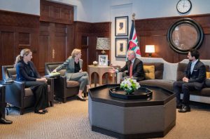 وحضر اللقاء مدير مكتب جلالة الملك، الدكتور جعفر حسان، ووزيرة التخطيط والتعاون الدولي زينة طوقان.